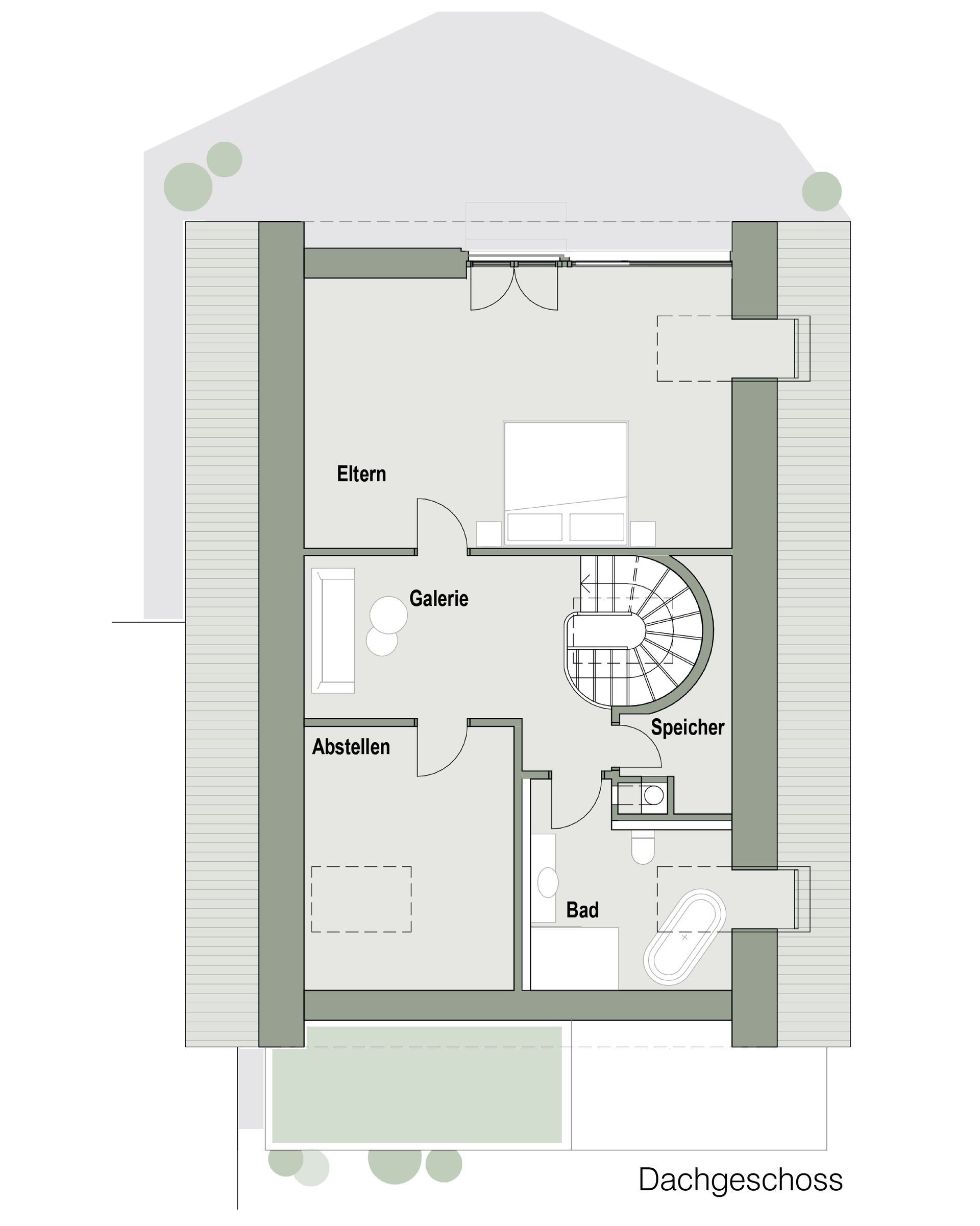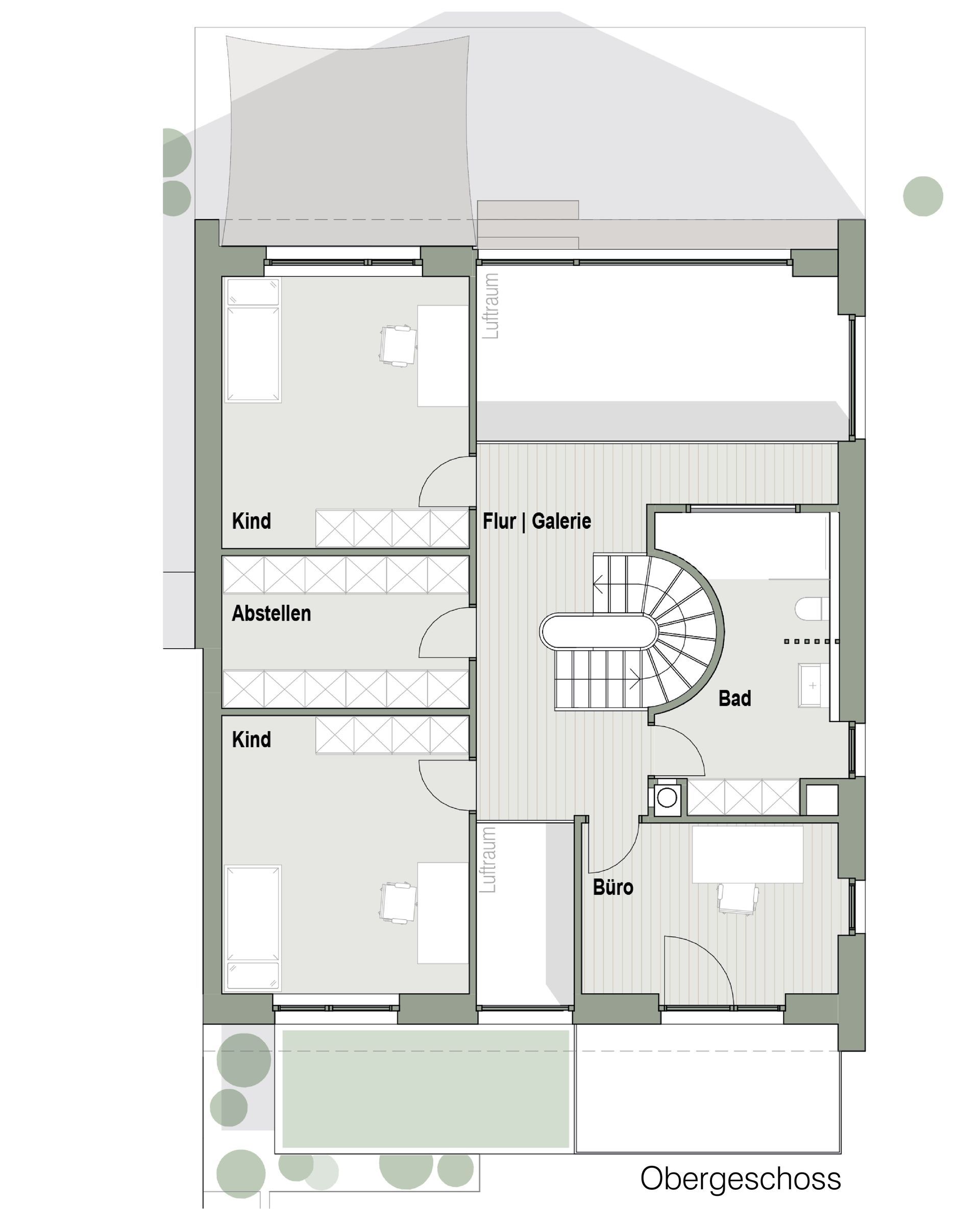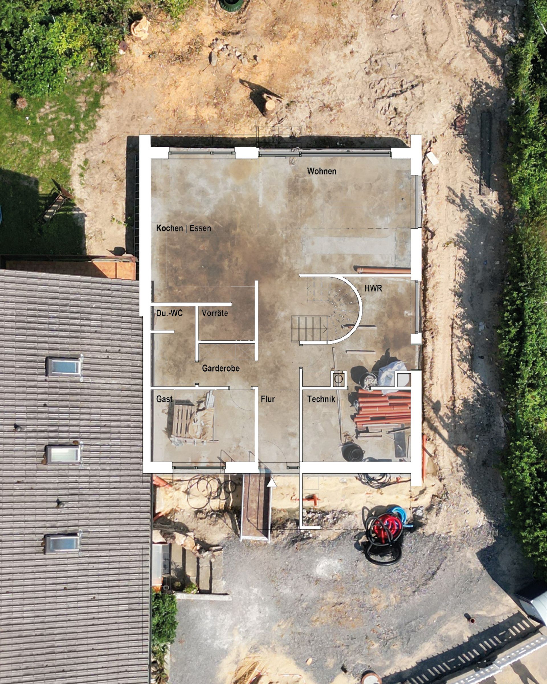 Auf der Bodenplatte einer ehemaligen Werkstatthalle entsteht ein neues Wohnhaus in Holzbauweise. Die großzügig verglaste Nordfassade mit Blick auf Garten und Weinberge, eine runde Teppe, 2 Lufträume mit Galerie und ein großzügiger Elternbereich unter dem Dach sind neben dem Fokus auf nachhaltiges Bauen besondere Merkmale an diesem Projekt.