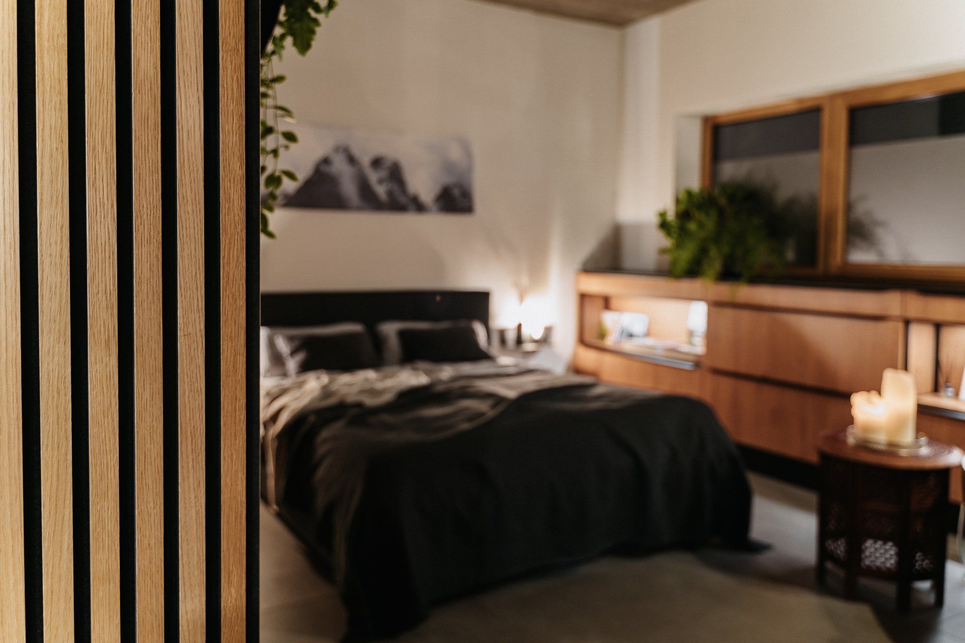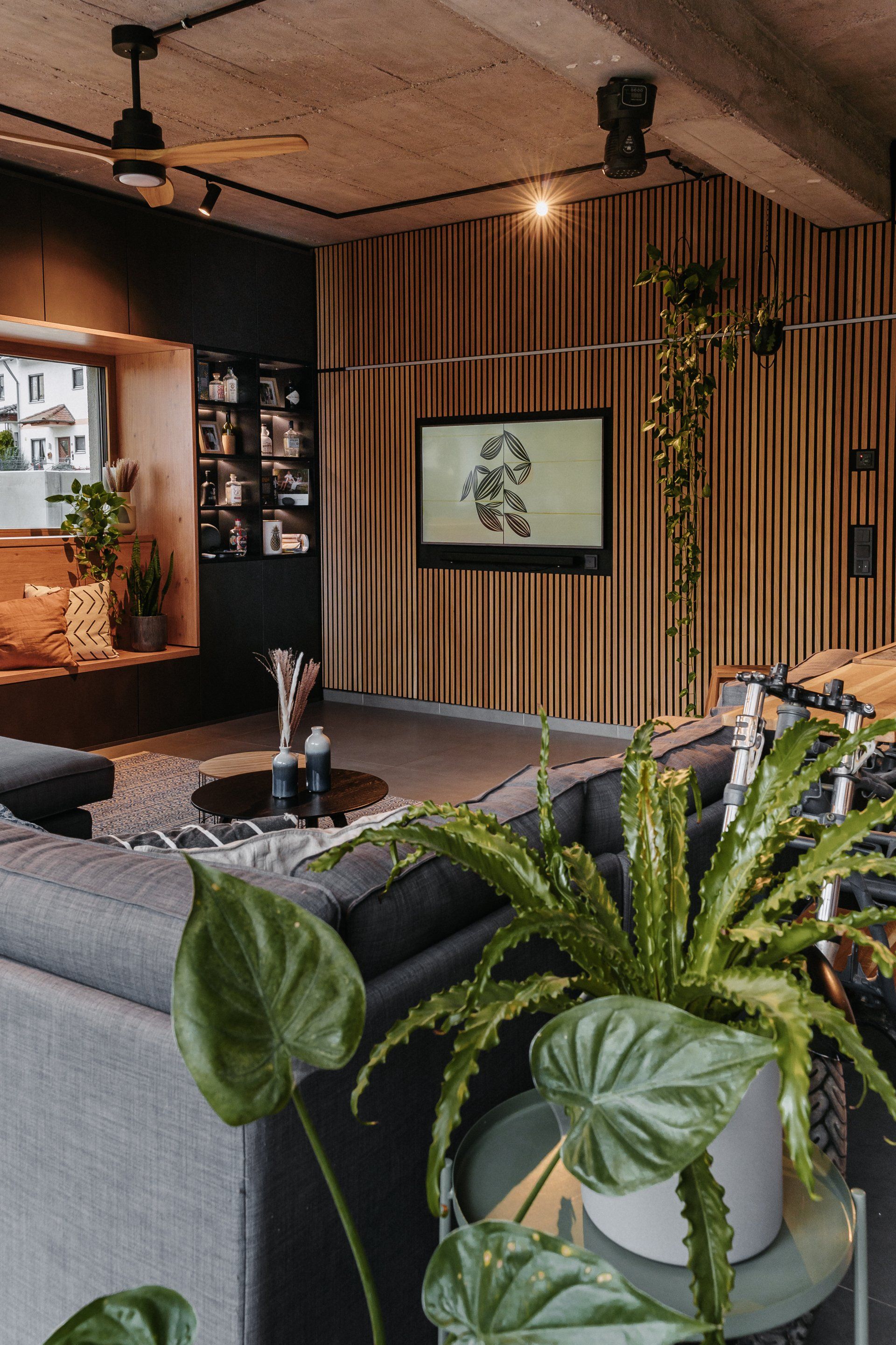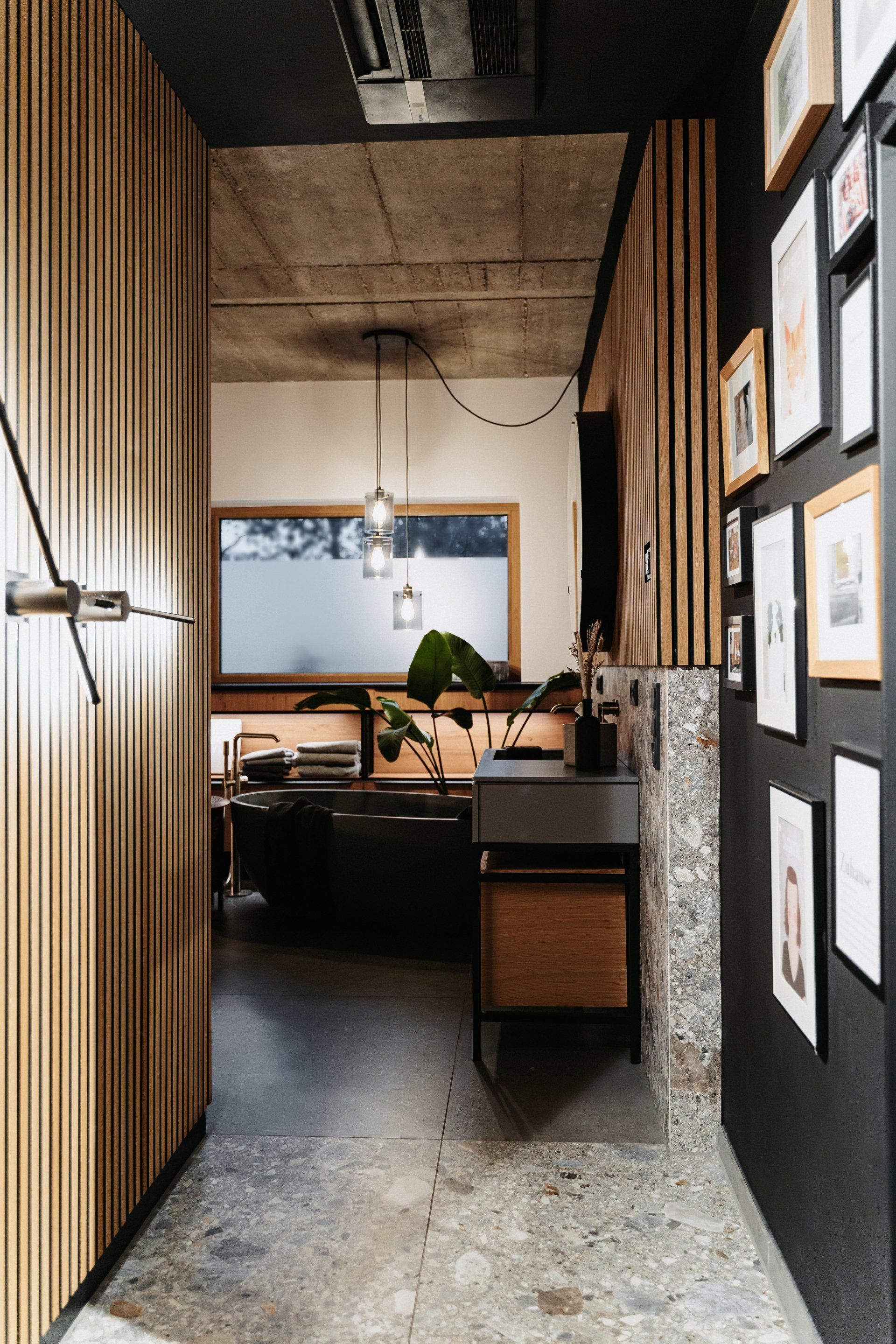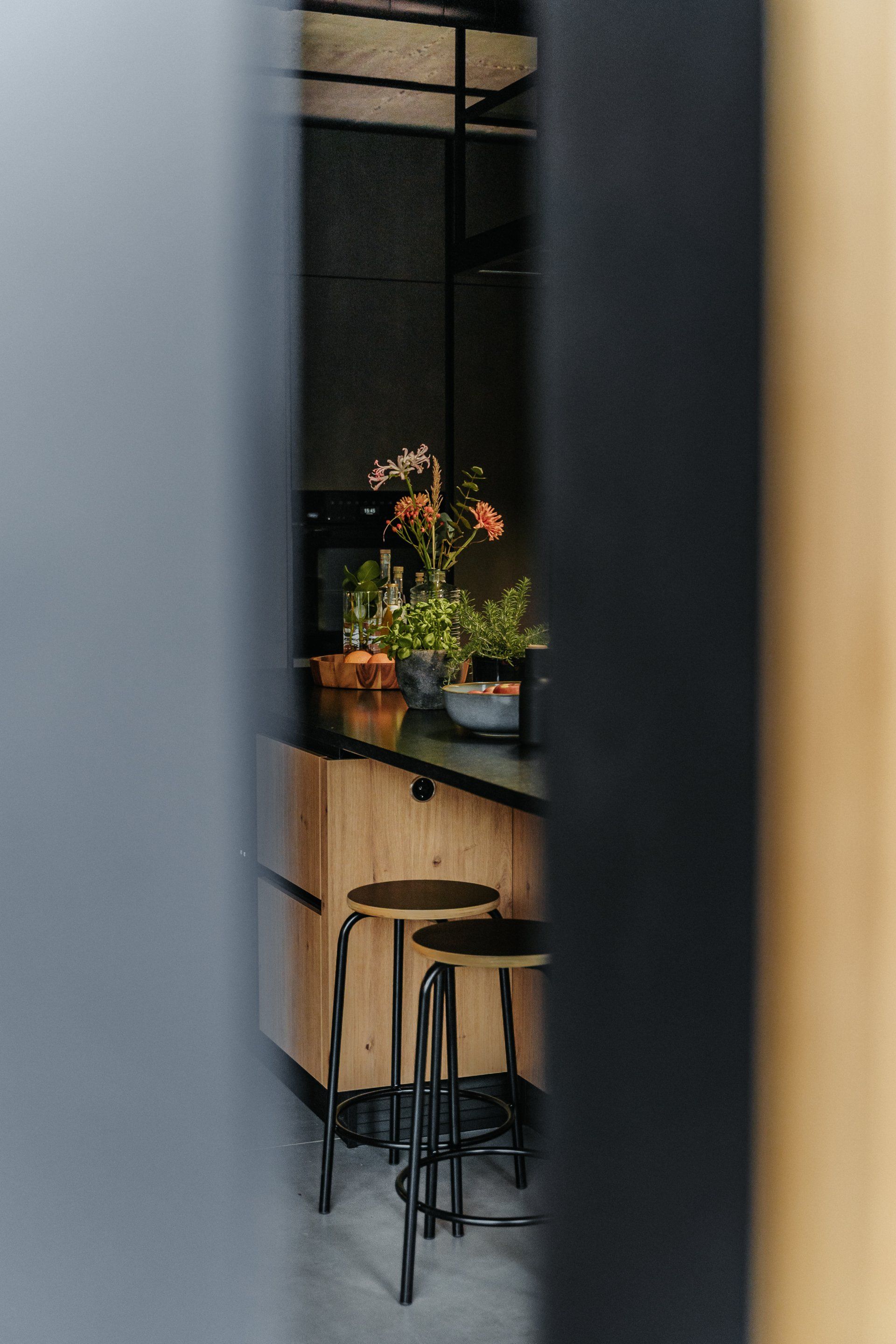 Eine ehemalige Werkstatt wird zum Wohnloft mit ausgefeilter Inneneinrichtung und großzügiger Raumgestaltung. Sichtbeton, Holz und dunkle Töne fügen sich zu einem harmonischen Gesamtbild mit industriellem Charme und durchdachten Details.