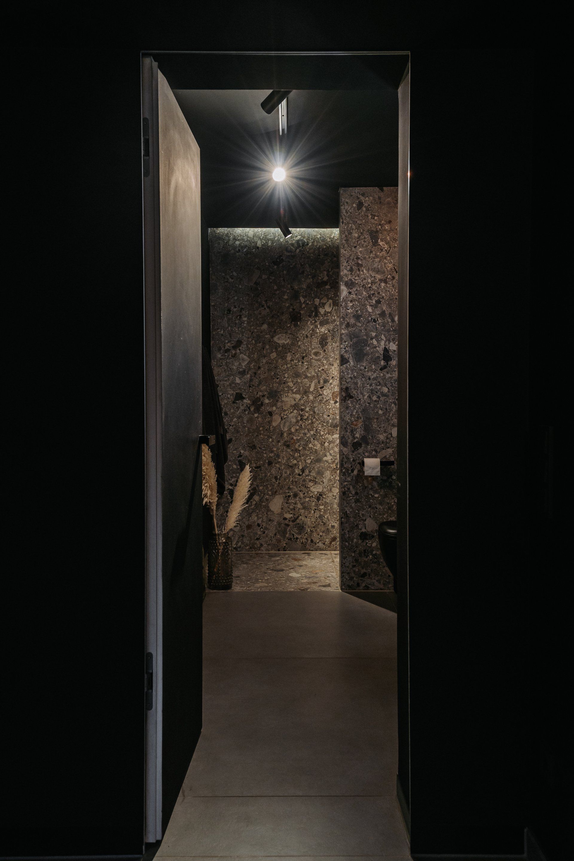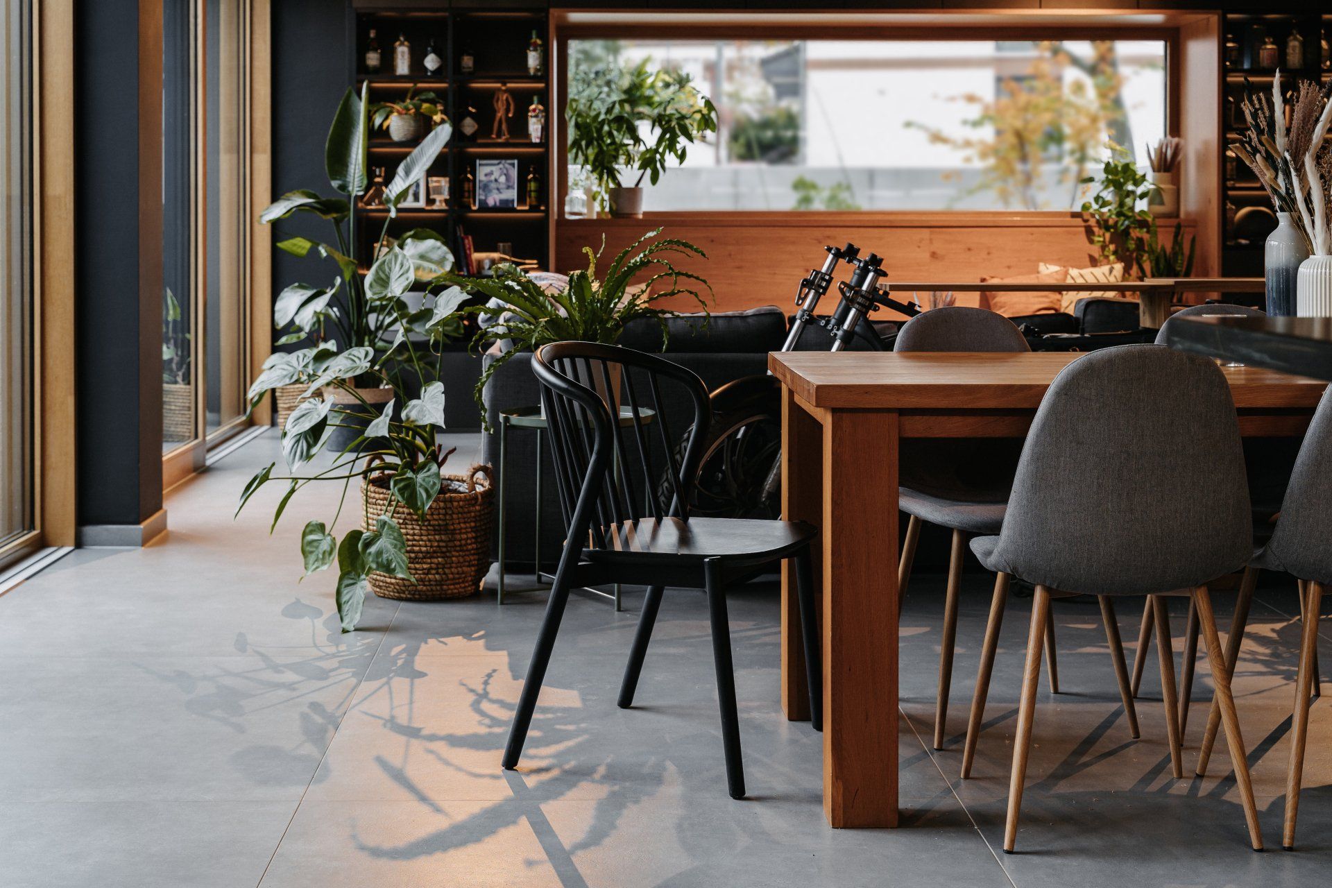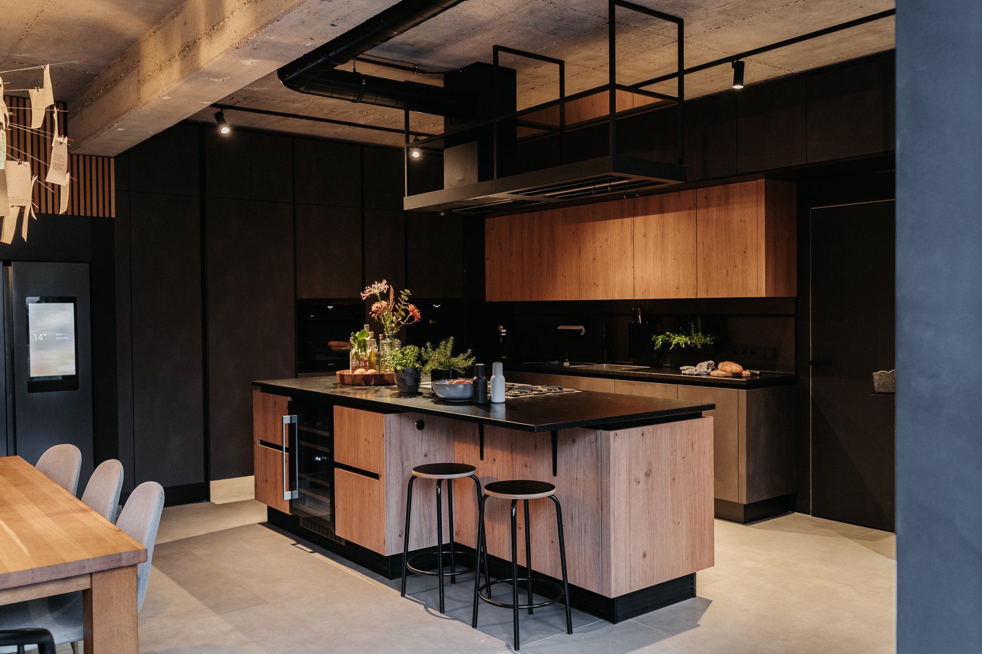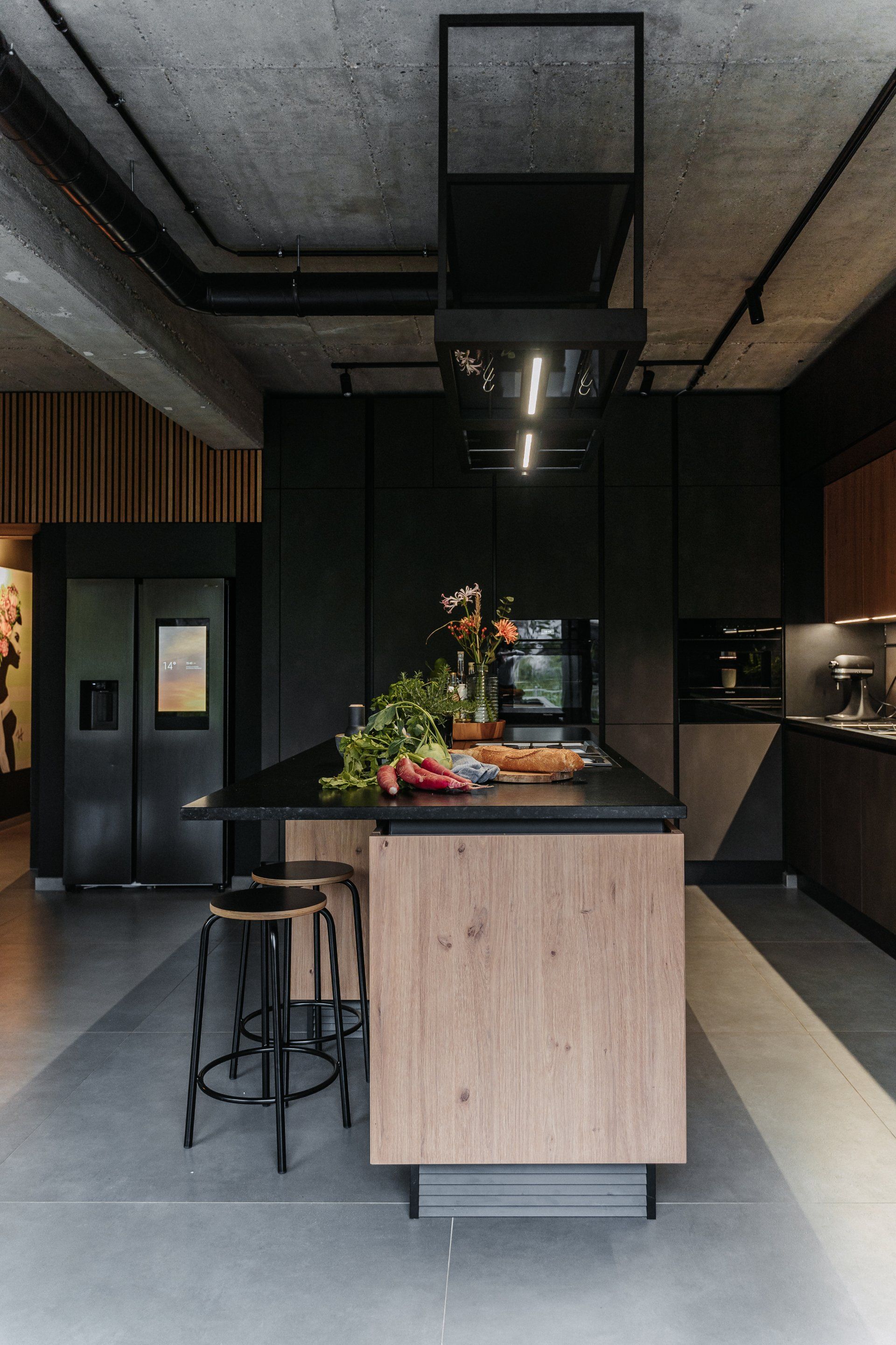 Eine ehemalige Werkstatt wird zum Wohnloft mit ausgefeilter Inneneinrichtung und großzügiger Raumgestaltung. Sichtbeton, Holz und dunkle Töne fügen sich zu einem harmonischen Gesamtbild mit industriellem Charme und durchdachten Details.